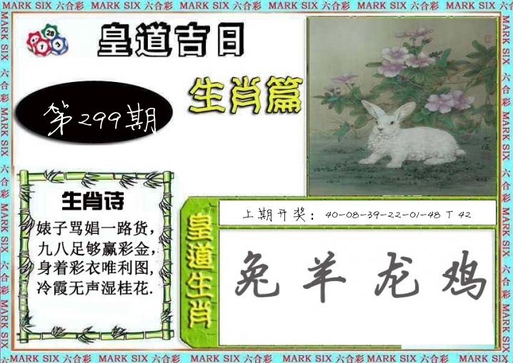 | 295期: ⑧肖 | 猴牛虎鸡鼠狗羊兔 | 兔39中 |