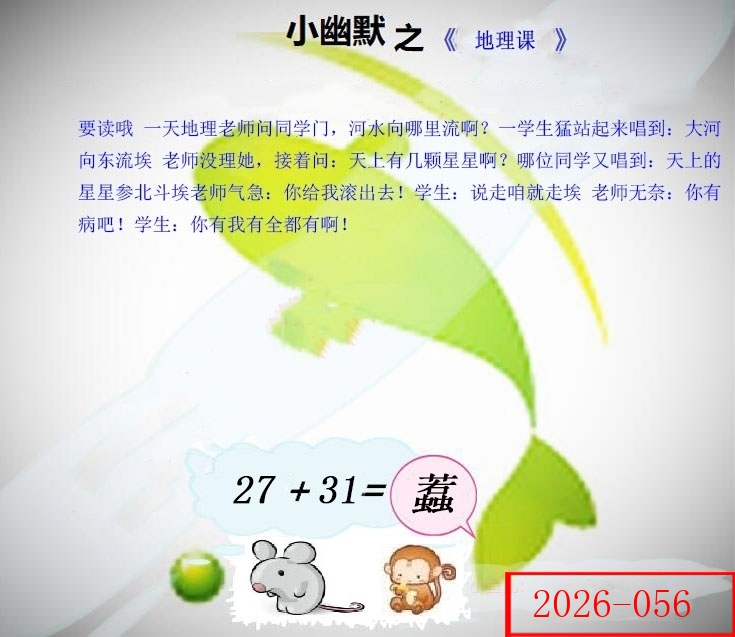 | 056期: ⑦肖 | 猴狗龙虎鸡羊蛇 | 猪08中 |