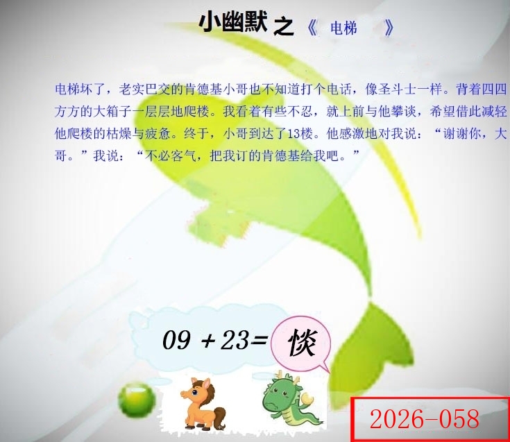 | 058期 | 虎 | 1尾 | 绿双 | 22-31 | 36羊 |