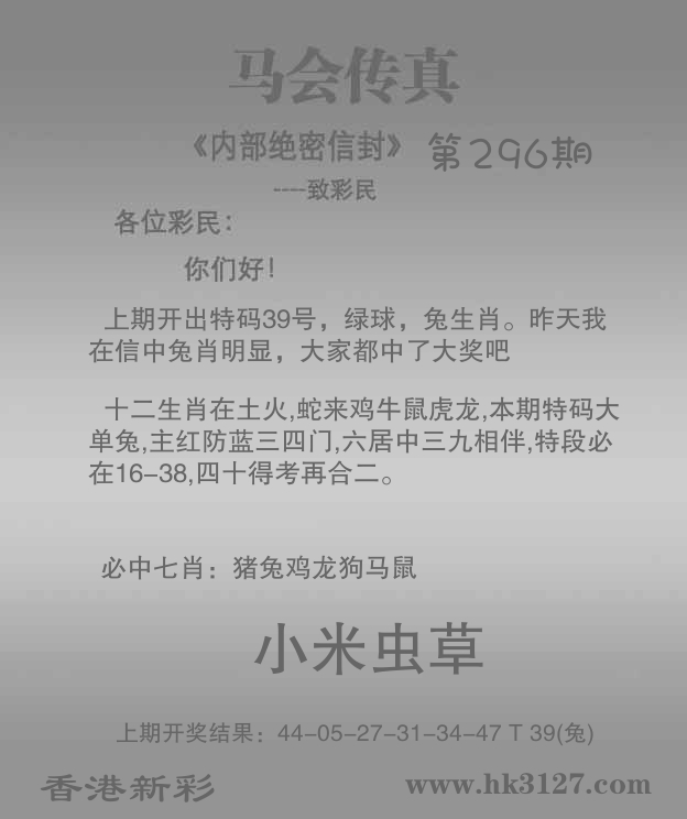 | 296期: ⑥肖 | 猴牛羊马龙虎 | 猪31中 |