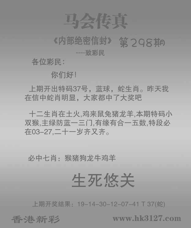 | 297期: ⑦肖 | 蛇羊马鸡龙鼠猪 | 蛇37中 |