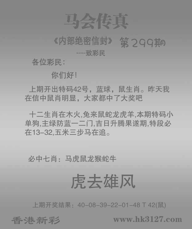 | 299期:公式四肖 | 299期:公式三头 | 299期:公式杀肖 |